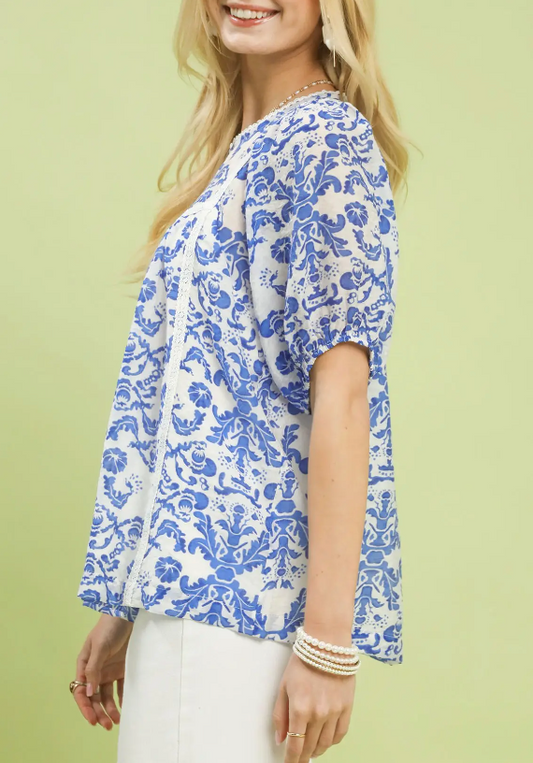 Beautiful in Blue Bold Print Top