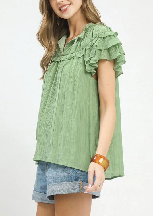 Lovely Lady Ruffle Top in Sage