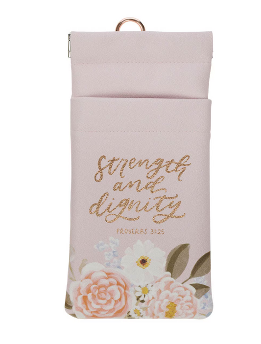 Strength and Dignity blush Floral Faux Leather Double Glasses Case