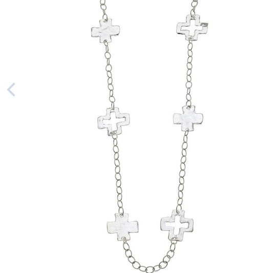 Susan Shaw Long Silver Cross Necklace