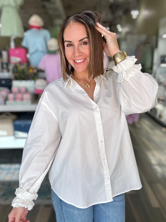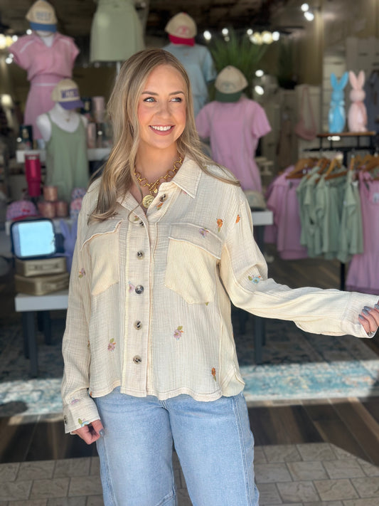 Garden of Flowers Button Top in Cream