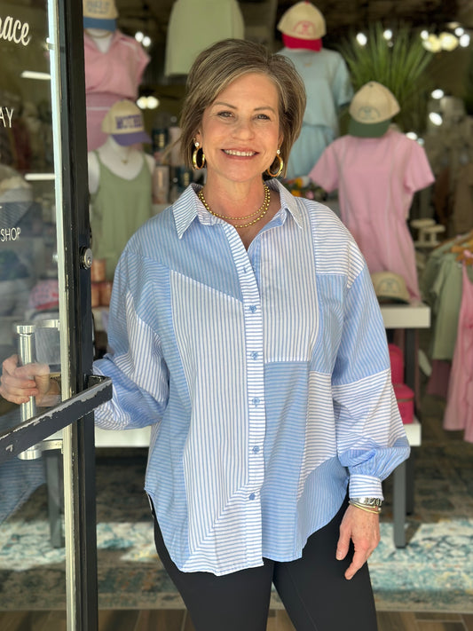 Weekend Wander Mix Striped Top in Baby Blue