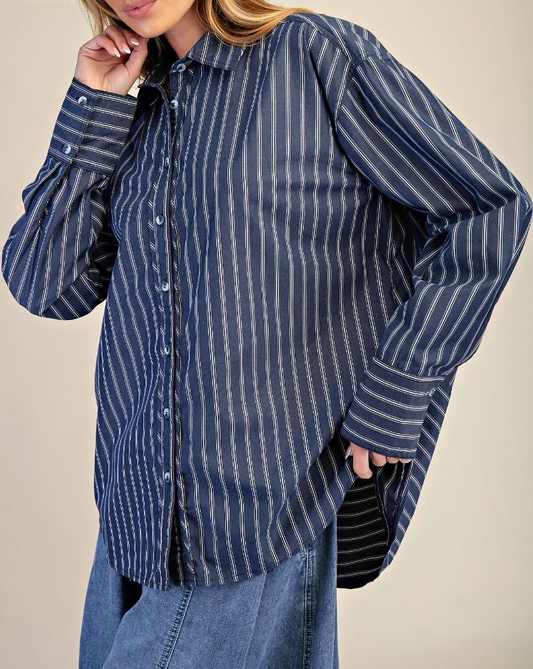 Fit Check Striped Top in Navy