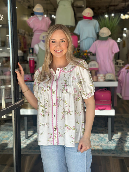 Spring Whisper Floral Top in White