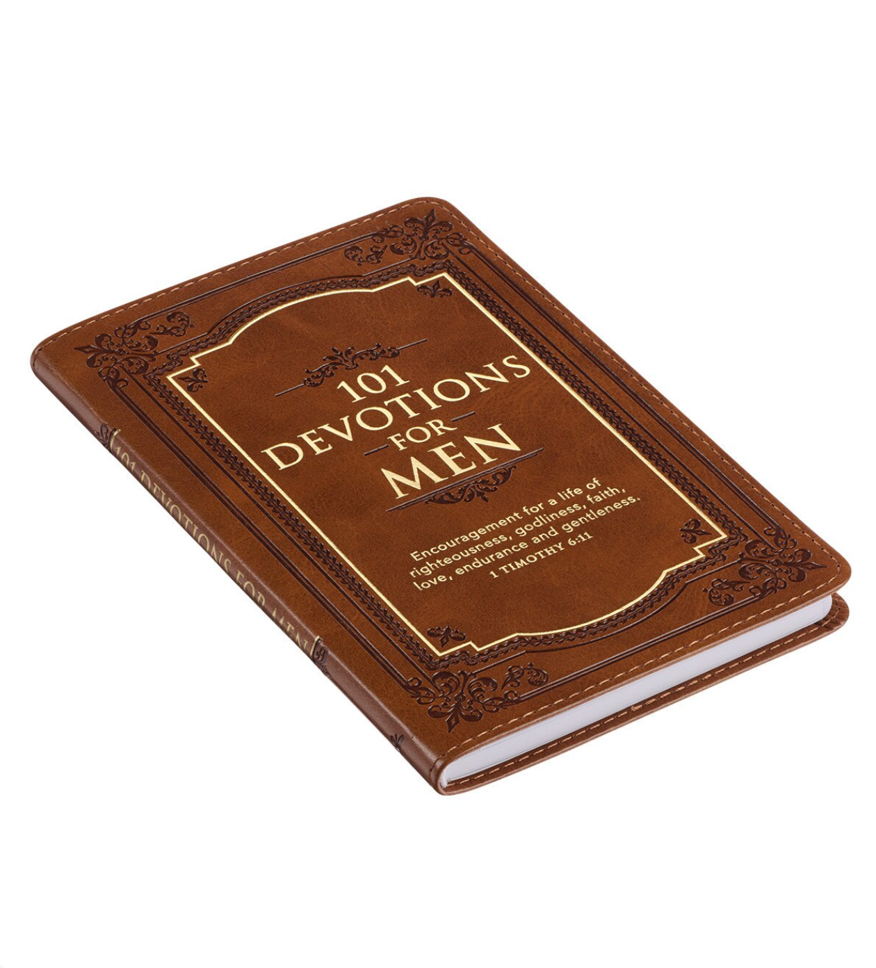 Encourage spiritual growth through the faith-building devotions in the 101 Devotions for Men Tawny Brown Faux Leather Devotional when you give it as a birthday gift or Father's Day gift this year.