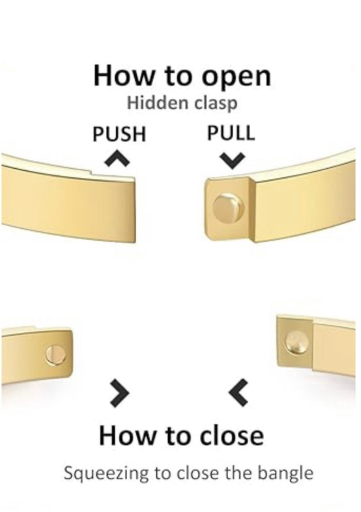 18K gold plated stainless steel hinged bangle bracelet.