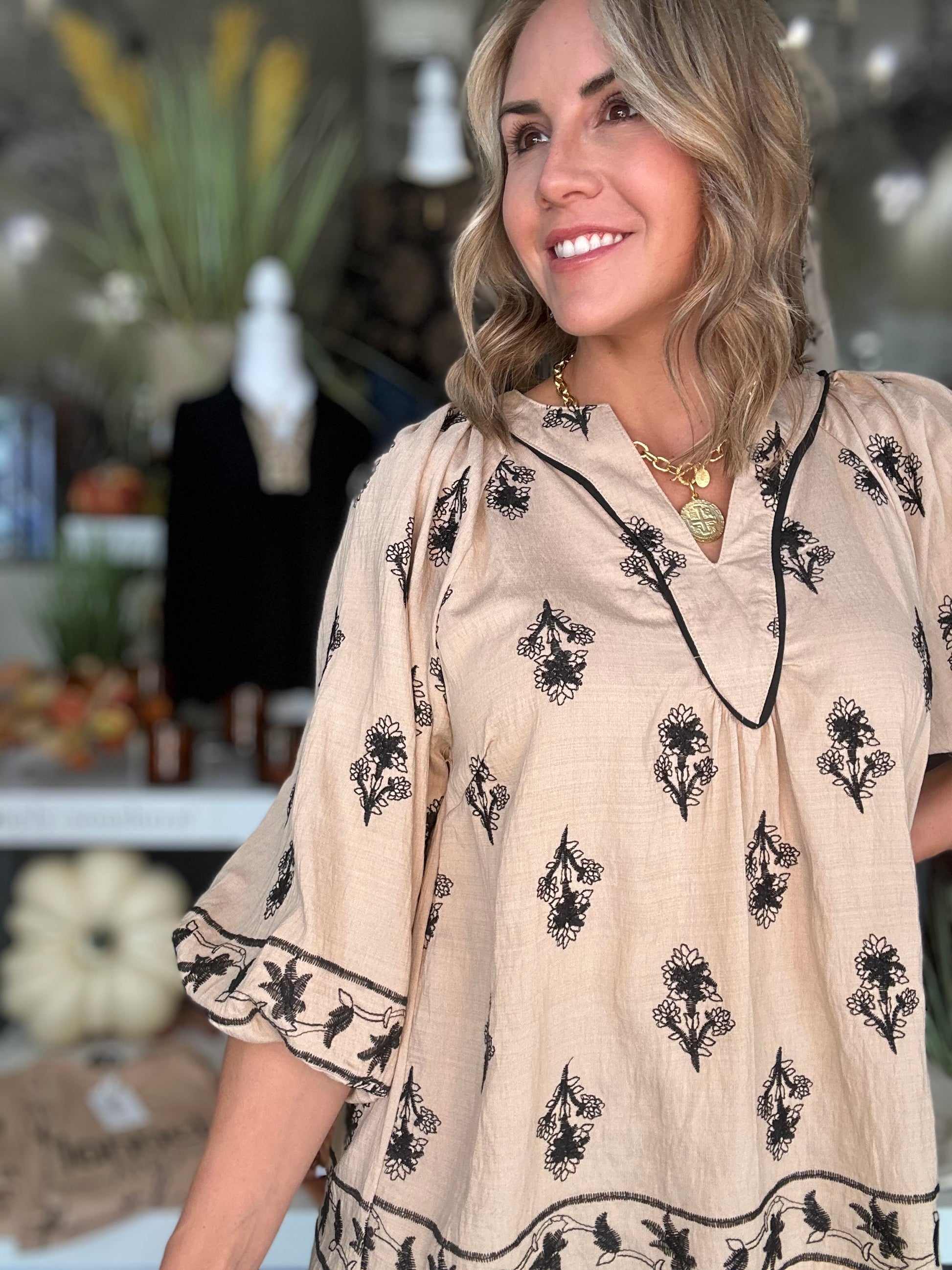 NEW! Brisk Stroll Embroidered Top in Latte