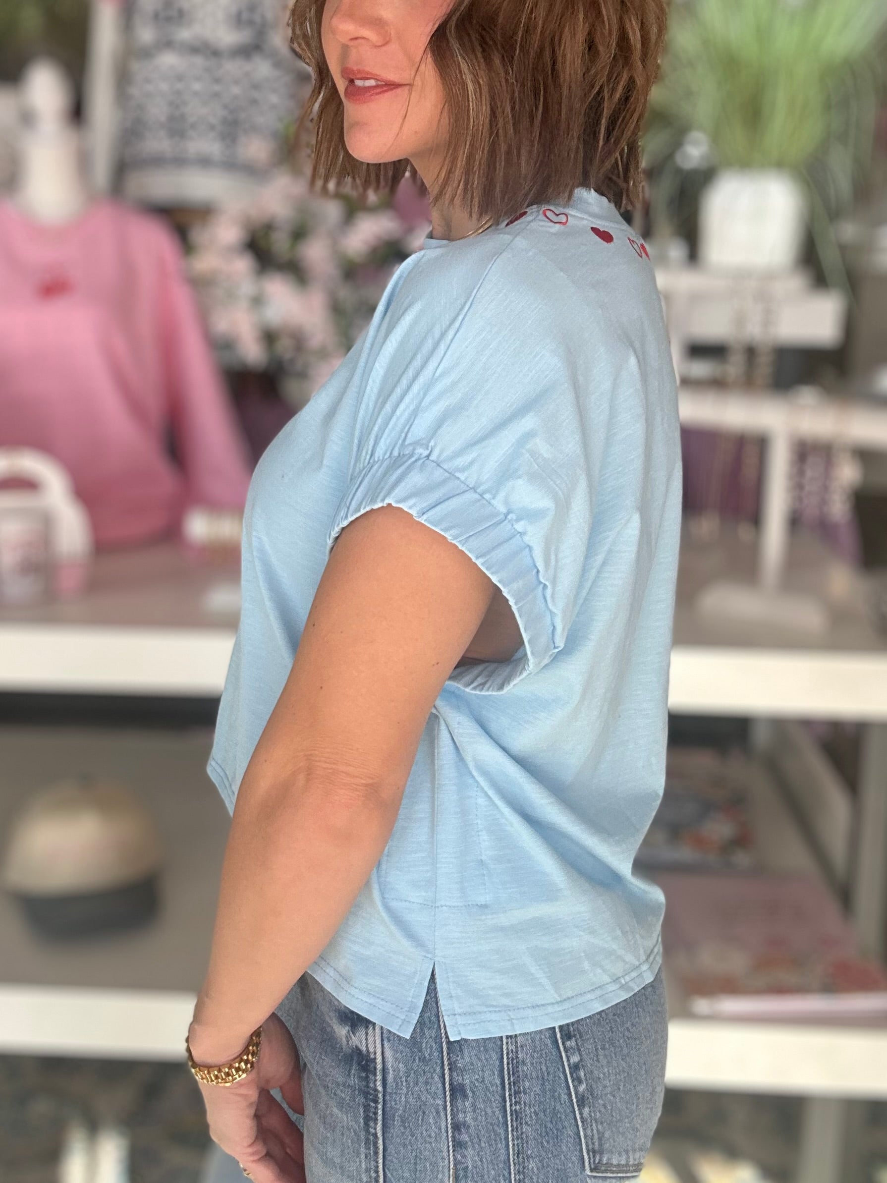 Candy Hearts Top in Sky Blue
