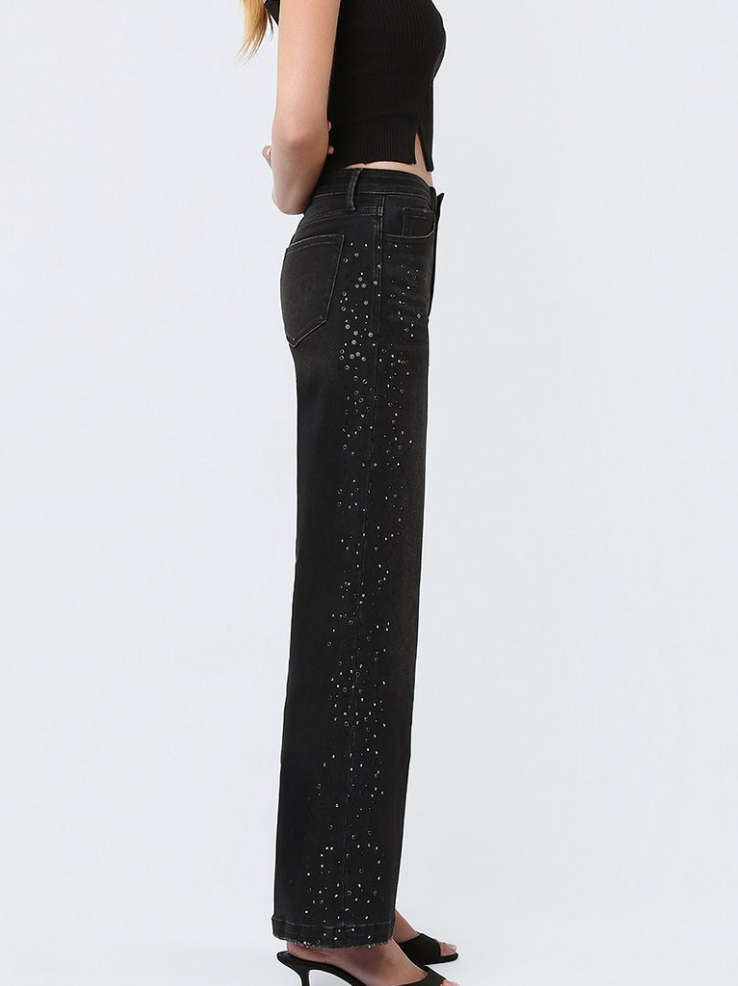 Stay in style this season with our favorite black rhinestone embellished jean!