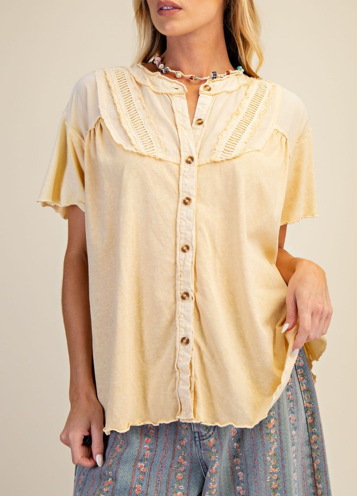 Description: BUTTON DOWN WASHED COTTON TOP