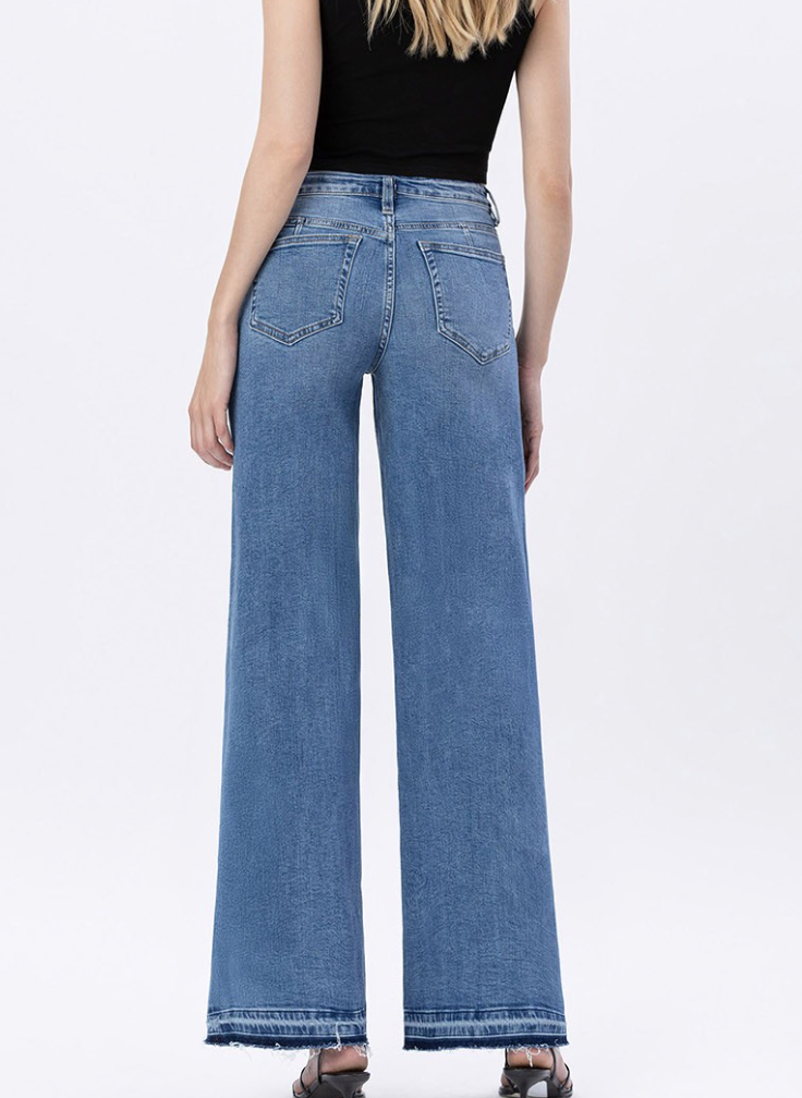 - SPLIT SEAM WIDE LEG JEANS