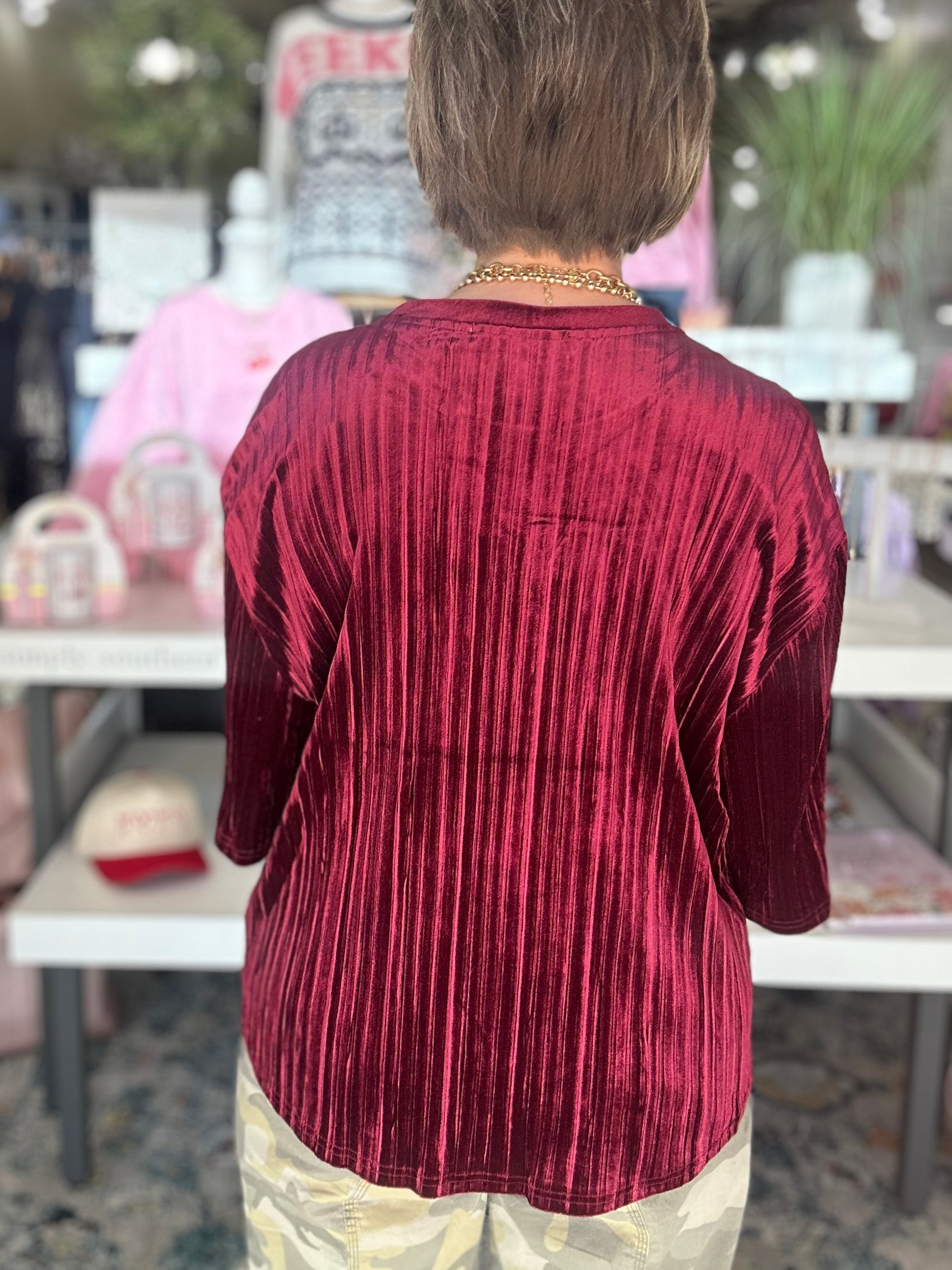 CREW NECK SHORT SLEEVE RIBBED VELVET TOP
