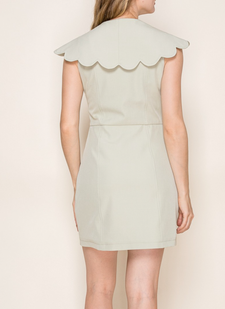 Scalloped Collar Mini Dress with Functional Front Buttons